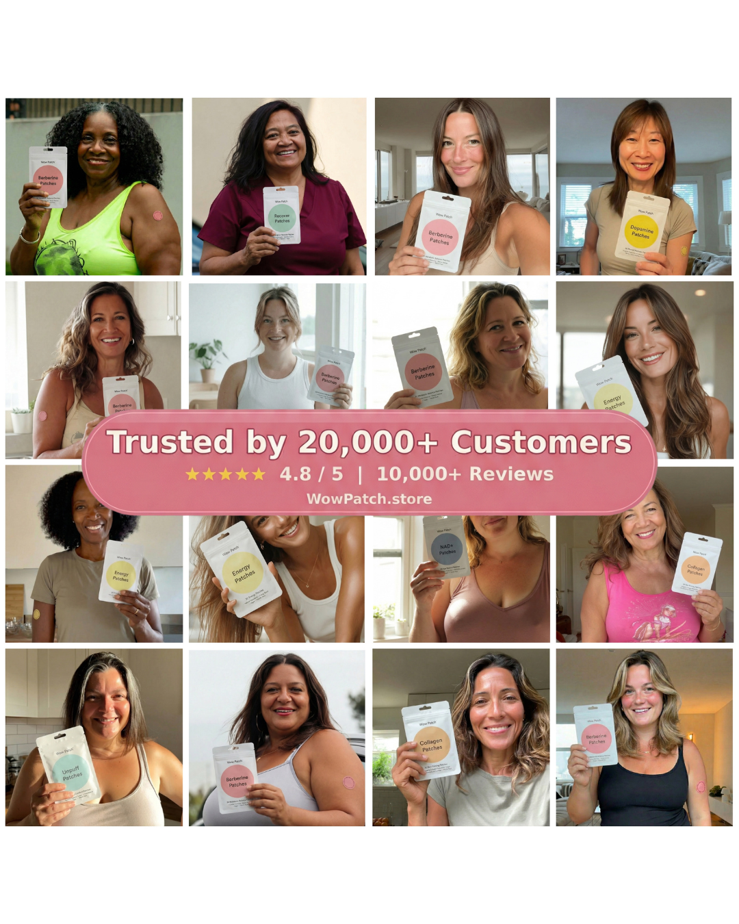 Wow Patches deliver clinically-backed natural ingredients directly through your skin, bypassing digestion for better absorption and faster results. No measuring. No swallowing. No schedule to stick to.